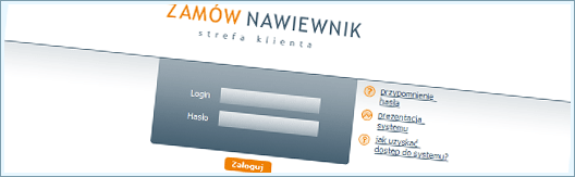 Na stronie www.zamow.nawiewnik.pl należy wpisać otrzymany w wiadomości e-mail login i hasło oraz przejść do strony głównej systemu.